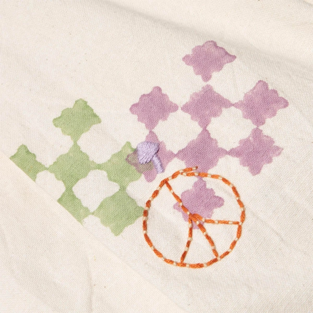 - Hand embroidered