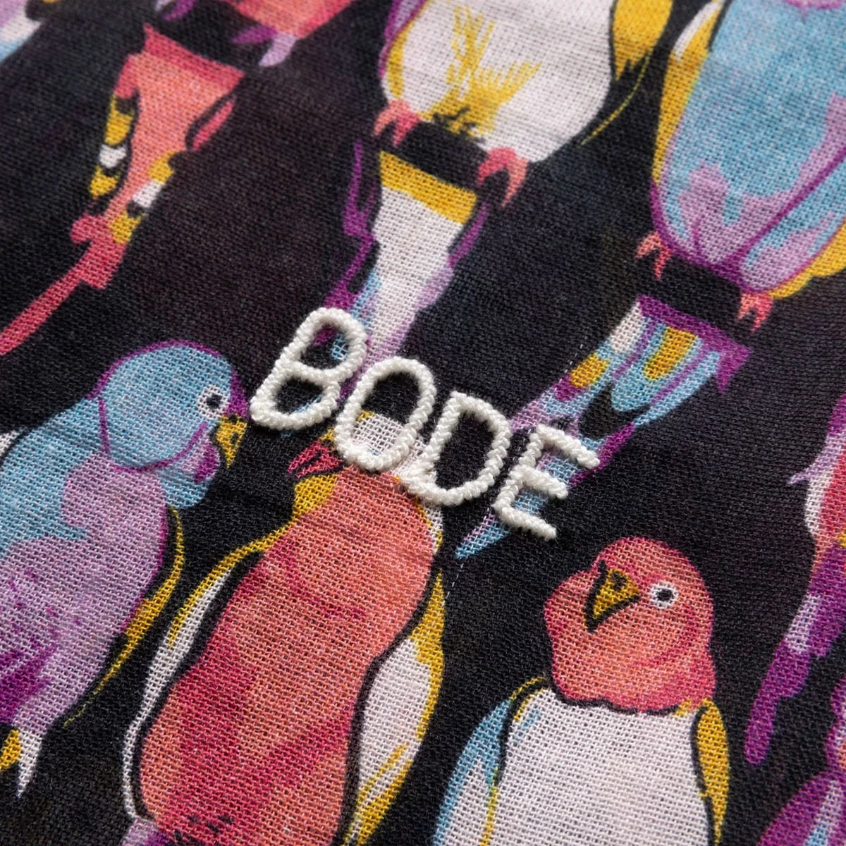 The namesake labels’ patterned shirts are a signature and are inspired by sentimental vintage pieces, each with their own story. This Parakeet vacation shirt is printed with a reproduction of the bird motif found on a vintage shirt from the 70s-80s.