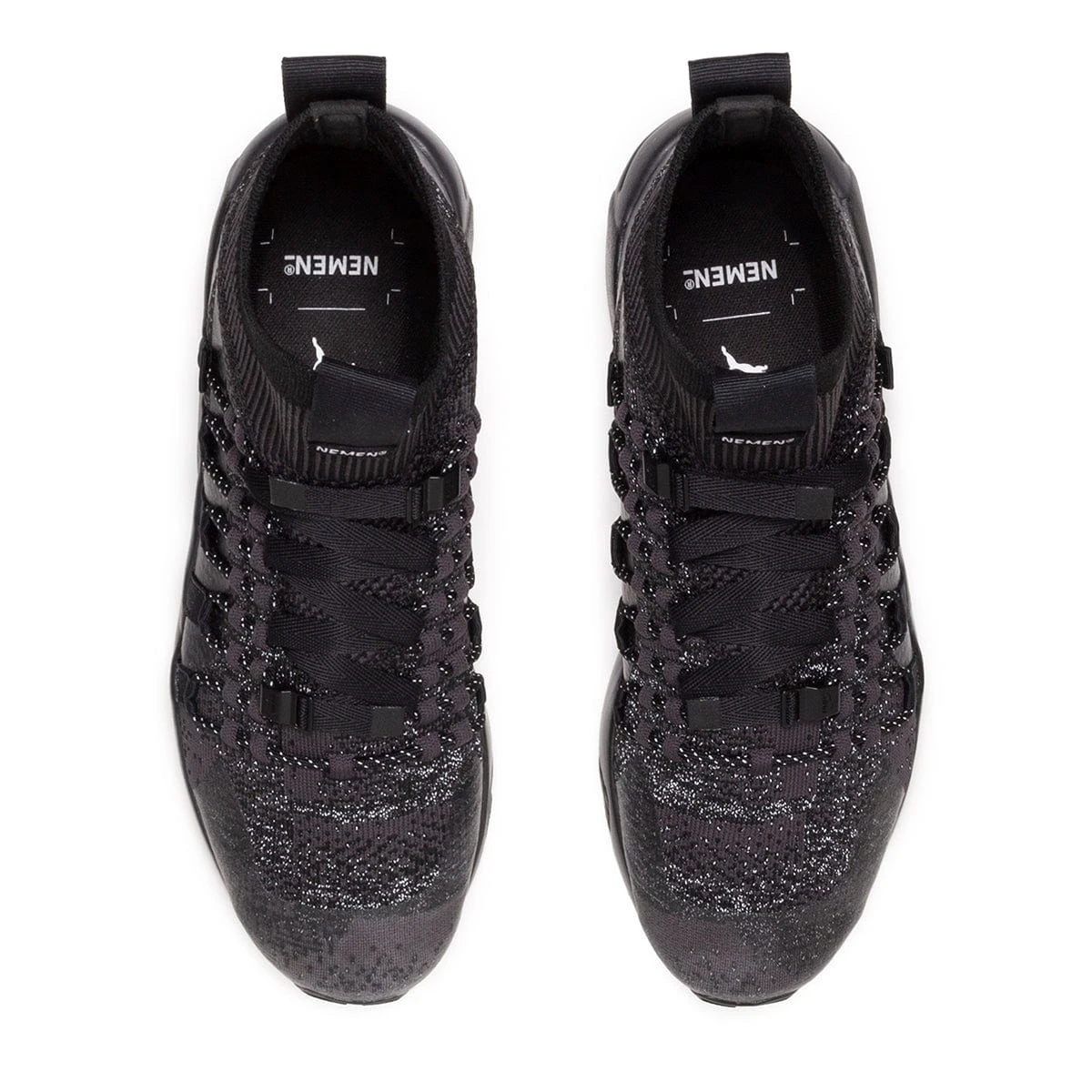 Puma and NEMEN emerge from the think tank with a transformed Blaze of Glory, turning the lifestyle silhouette into futuristic runner. Known for its technical designs, Italy’s NEMEN makes full use of a knit sock upper and bungee and with web belt-like speed lacing system. Finished with front and back heel pulls and PUMA’s signature Trinomic cushioning system, all you need to do is slip them on and settle in for all day comfort in an elevated package.
