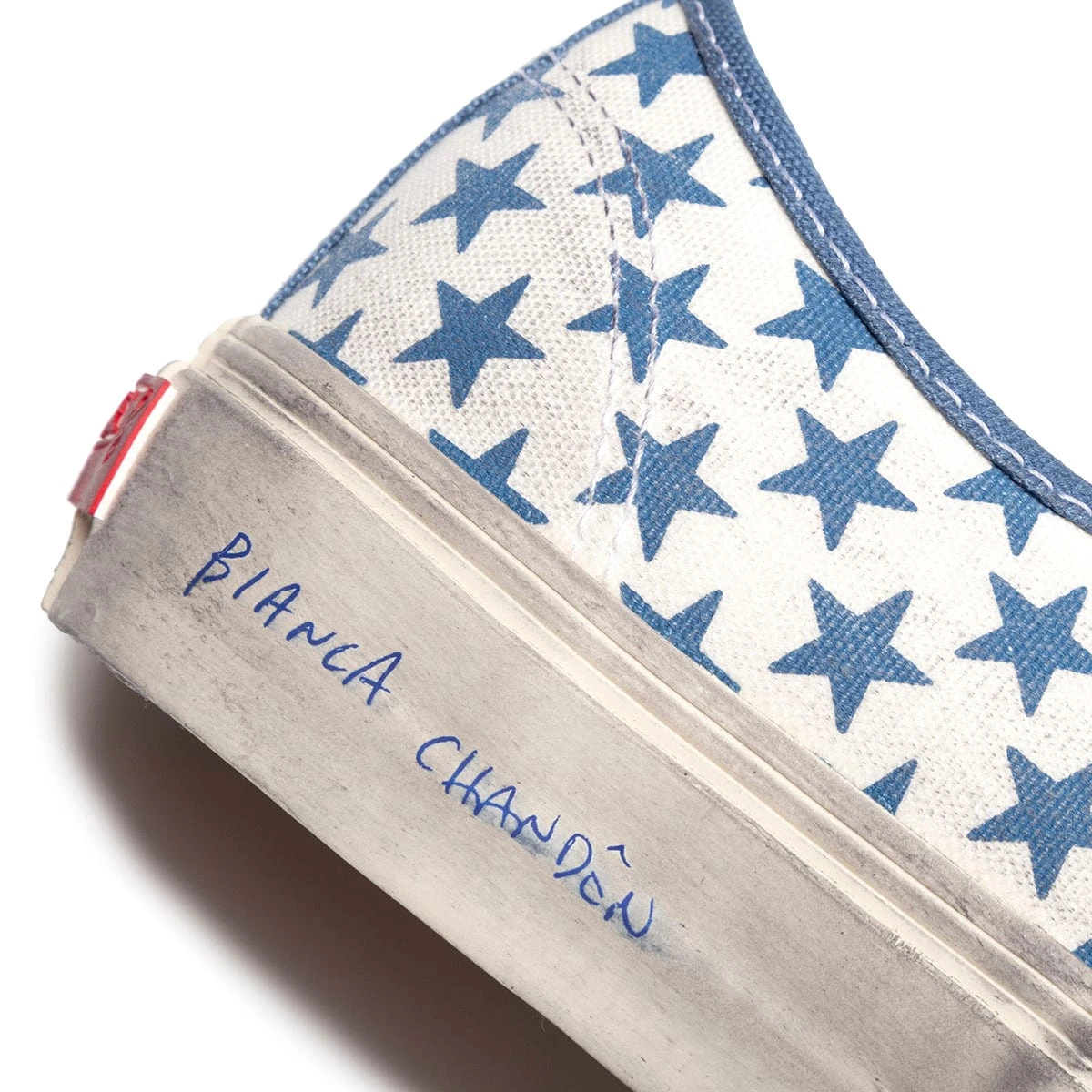 Vault by Vans adds Alex Olson’s Bianca Chandôn to it’s list of collaborators for a collection comprised of four shoes. The collection features an all-over star print, a nod to Van’s iconic checkerboard print with a beat up aesthetic on the Sk8-Hi Reissue VLT LX, Old Skool VLT LX, Authentic VLT LX and Classic Slip-on VLT LX. Laces and midsoles have a worn-in look, finished off with a handwritten “Bianca Chandôn” on the heel.